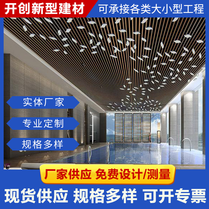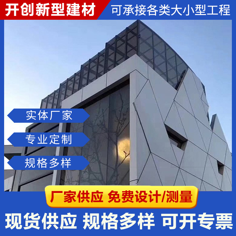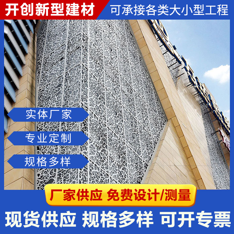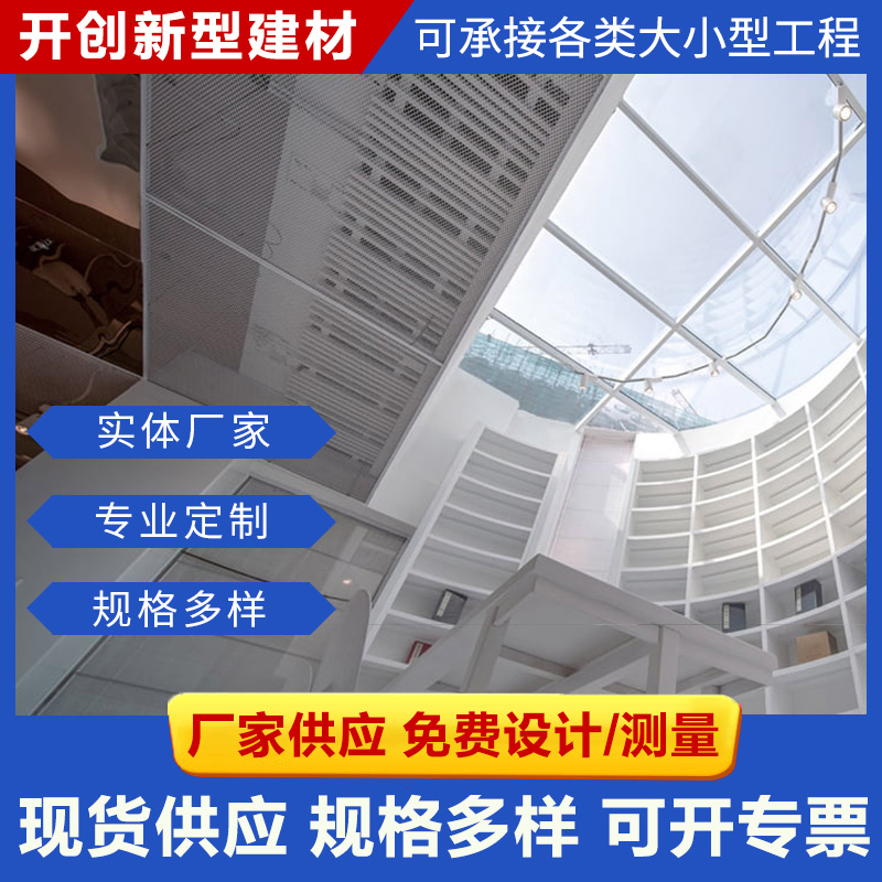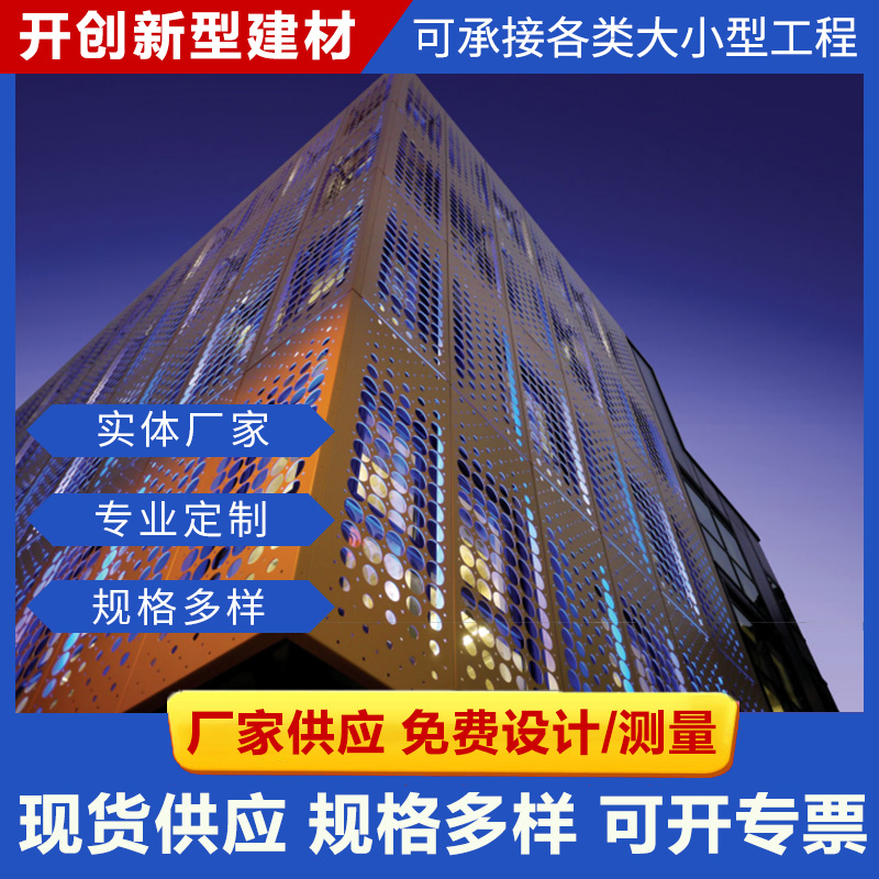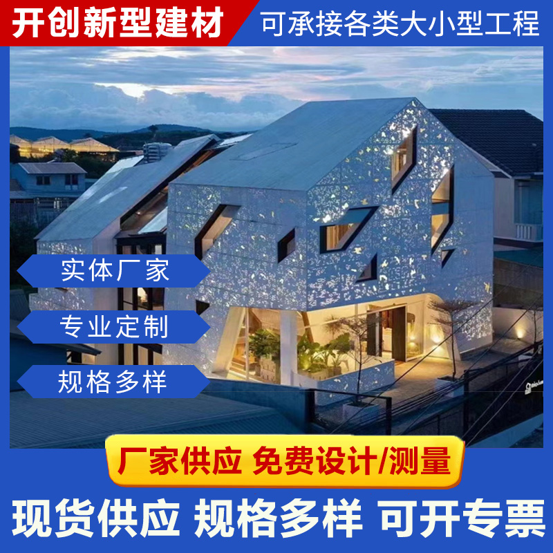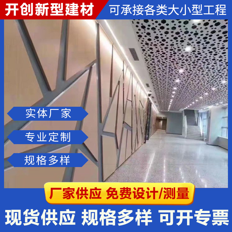 山東開創新型建材有限公司是拉網鋁單板、木紋鋁單板、幕墻鋁單板、鋁方通系列、沖孔鋁單板、雕花鏤空板、長城鋁單板、異形天花定制、圓柱鋁單板等產品專業生產加工的公司,擁有完整、科學的質量管理體系。本公司的誠信、實力和產品質量獲得業界的認可。 山東開創新型建材有限公司是專業從事“幕墻鋁單板,鋁方通等建筑裝飾材料”研發,生產,銷售,安裝及技術服務于一體的現代型企業。鋁方通是最近幾年出現的新型裝飾材料,它具有輕質、耐水、不吸塵、抗腐蝕、易擦洗、易安裝、立體感強、色彩柔和和美觀大方等特點,深受用戶的歡迎。高邊鋁方通是采用鋁合金板材為基材,再經過數控折彎等技術成型,表面噴涂裝飾性涂料的一種新型幕墻材料?!?